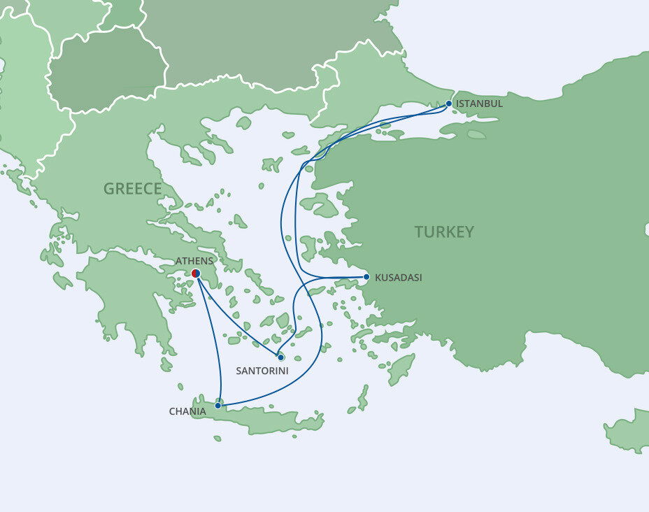 Souda Bay’s huge natural harbour is a spectacular entrance to Greece's largest island, Crete. Packed with beautiful beaches and rich maritime history, Crete is also a treasure trove of well-stocked museums, rich archaeological sites and charming Venetian fishing towns. Ships will dock at the Port of Souda.