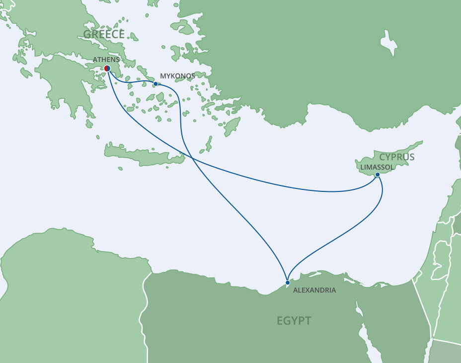The vibrant city of Limassol is located on Akrotiri Bay in the shadow of the Troodos mountains. Its the jumping off point to explore the ancient riches of Cyprus. See ruins, majestic mountains and scenery, stunning beaches, and vast groves of lemons, oranges and olives. Ships will dock at the cruise terminal.