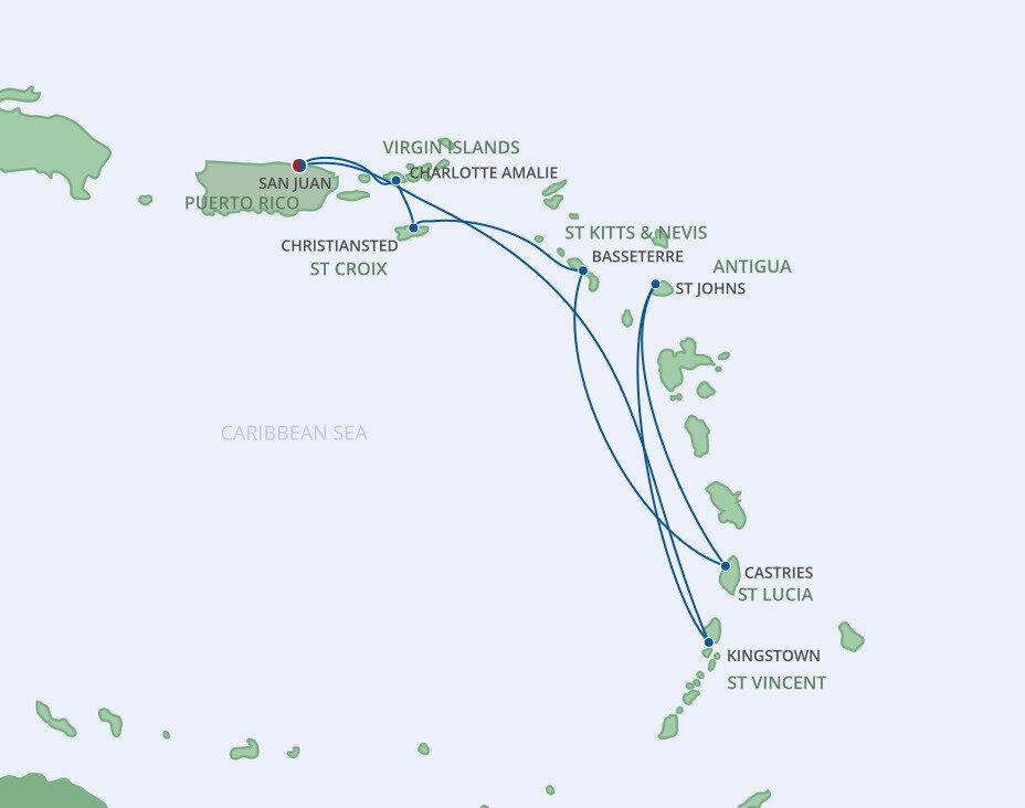 Antigua has a beach for every day of the year— literally. But the island experience goes beyond 365 distinct ribbons of white sand and clear waters. In the capital city of St. John's, you’ll discover charming candy-colored architecture, lively markets, and a beautiful baroque cathedral. And smiling locals greet you everywhere you go. On the southern coast, you can explore Nelson’s Dockyard, a centuries-old British naval base built by Admiral Horatio Nelson. Past Antigua’s yacht-studded coastline, you’ll find upscale boutiques, wild forest trails, hidden coves, and coral reefs bustling with tropical fish. But the best way to really see the island is from up above, so cruise to Antigua and hop into a helicopter for a panoramic look at lush jungles, golden beaches, and the nearby volcanic island, Montserrat.