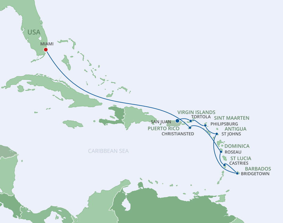 Antigua has a beach for every day of the year— literally. But the island experience goes beyond 365 distinct ribbons of white sand and clear waters. In the capital city of St. John's, you’ll discover charming candy-colored architecture, lively markets, and a beautiful baroque cathedral. And smiling locals greet you everywhere you go. On the southern coast, you can explore Nelson’s Dockyard, a centuries-old British naval base built by Admiral Horatio Nelson. Past Antigua’s yacht-studded coastline, you’ll find upscale boutiques, wild forest trails, hidden coves, and coral reefs bustling with tropical fish. But the best way to really see the island is from up above, so cruise to Antigua and hop into a helicopter for a panoramic look at lush jungles, golden beaches, and the nearby volcanic island, Montserrat.