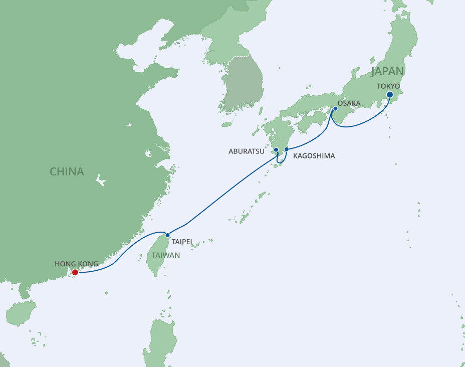 Osaka's Tempozan Cruise Terminal is located about 15 km (9 miles) from Osaka city center, a 30-minute drive. Kyoto is roughly 60 km (37 miles) away.