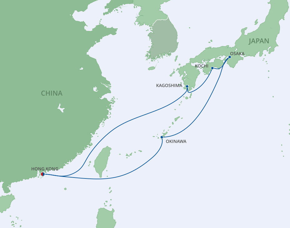 Osaka's Tempozan Cruise Terminal is located about 15 km (9 miles) from Osaka city center, a 30-minute drive. Kyoto is roughly 60 km (37 miles) away.