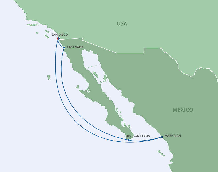Cruise lines embark to destinations such as the Mexican Riviera, Hawaii, the California Coast and the Panama Canal.