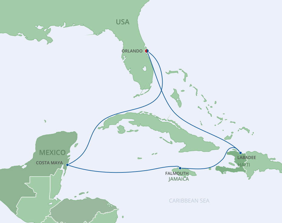 Labadee lies on the north coast of Hispaniola, with a backdrop of lush jungle-covered mountains that fall into the turquoise blue waters. A tucked-away paradise, where pristine beaches, frozen cocktails, and sparkling blue waters await. Ships will dock at the pier.
