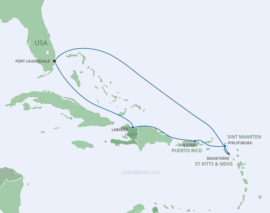 Labadee lies on the north coast of Hispaniola, with a backdrop of lush jungle-covered mountains that fall into the turquoise blue waters. A tucked-away paradise, where pristine beaches, frozen cocktails, and sparkling blue waters await. Ships will dock at the pier.