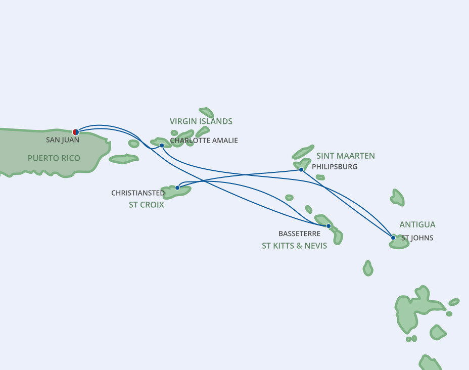 Antigua has a beach for every day of the year— literally. But the island experience goes beyond 365 distinct ribbons of white sand and clear waters. In the capital city of St. John's, you’ll discover charming candy-colored architecture, lively markets, and a beautiful baroque cathedral. And smiling locals greet you everywhere you go. On the southern coast, you can explore Nelson’s Dockyard, a centuries-old British naval base built by Admiral Horatio Nelson. Past Antigua’s yacht-studded coastline, you’ll find upscale boutiques, wild forest trails, hidden coves, and coral reefs bustling with tropical fish. But the best way to really see the island is from up above, so cruise to Antigua and hop into a helicopter for a panoramic look at lush jungles, golden beaches, and the nearby volcanic island, Montserrat.