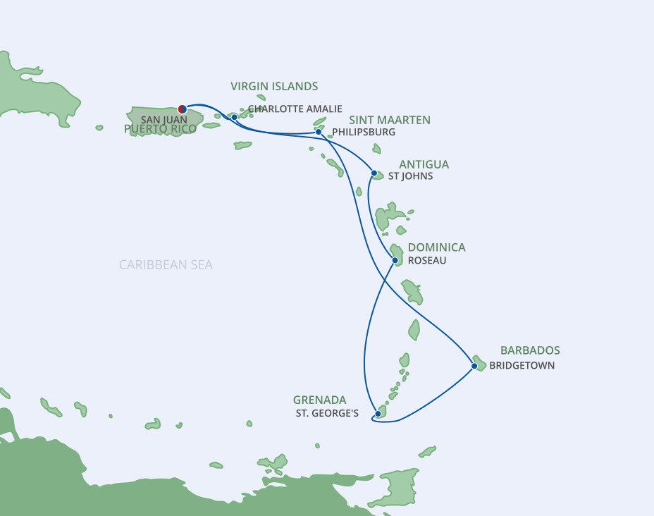 San Juan's picturesque cobblestone streets, plazas and chapels reflect its Spanish heritage. But the second oldest city in the Americas also boasts fine beaches, lush rainforests, verdant mountainsides, imposing forts and a lovely tropical climate. Ships will dock at this port.