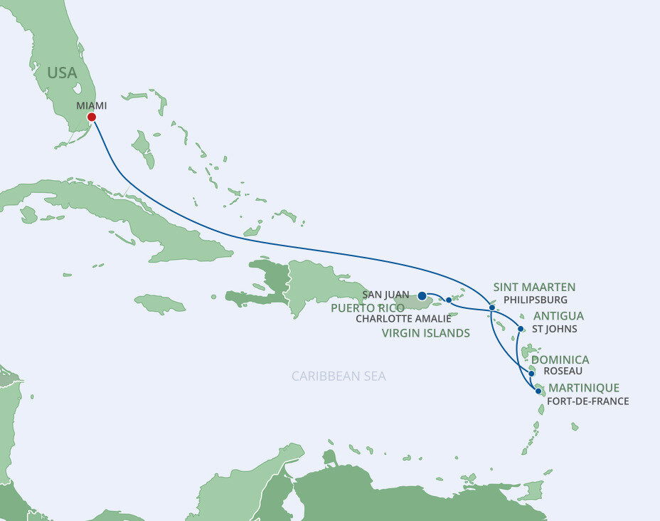 Antigua has a beach for every day of the year— literally. But the island experience goes beyond 365 distinct ribbons of white sand and clear waters. In the capital city of St. John's, you’ll discover charming candy-colored architecture, lively markets, and a beautiful baroque cathedral. And smiling locals greet you everywhere you go. On the southern coast, you can explore Nelson’s Dockyard, a centuries-old British naval base built by Admiral Horatio Nelson. Past Antigua’s yacht-studded coastline, you’ll find upscale boutiques, wild forest trails, hidden coves, and coral reefs bustling with tropical fish. But the best way to really see the island is from up above, so cruise to Antigua and hop into a helicopter for a panoramic look at lush jungles, golden beaches, and the nearby volcanic island, Montserrat.