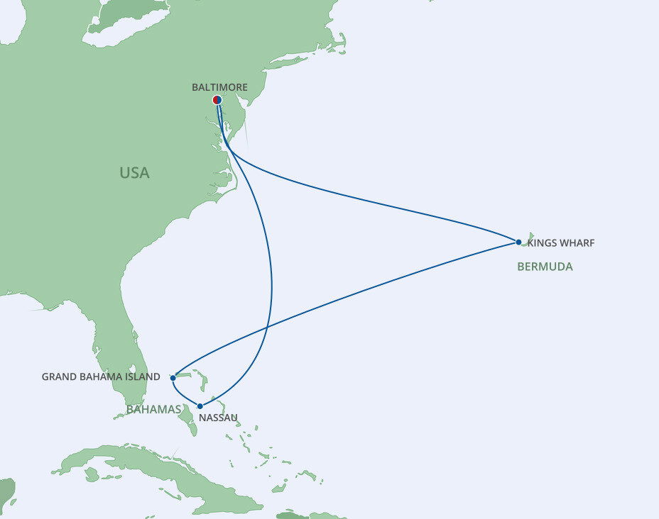 Ships dock at Baltimore’s main cruise port, Cruise Maryland Terminal, which is just a 10-minute drive from Baltimore’s iconic Inner Harbor area.