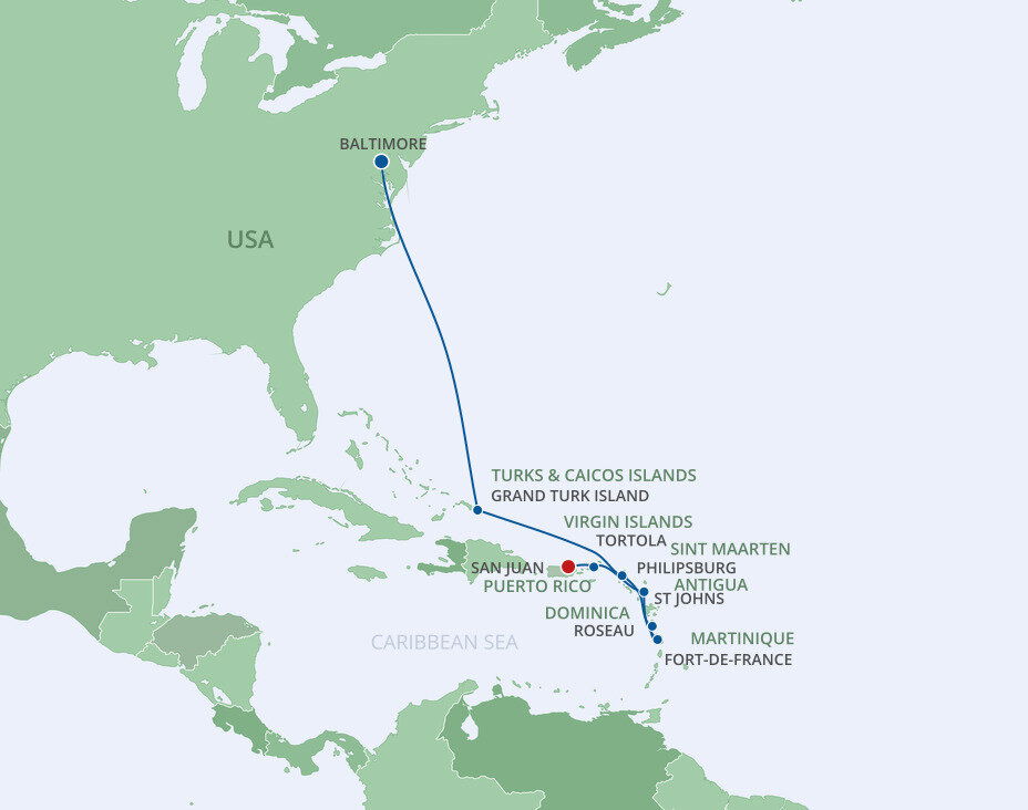 San Juan's picturesque cobblestone streets, plazas and chapels reflect its Spanish heritage. But the second oldest city in the Americas also boasts fine beaches, lush rainforests, verdant mountainsides, imposing forts and a lovely tropical climate. Ships will dock at this port.