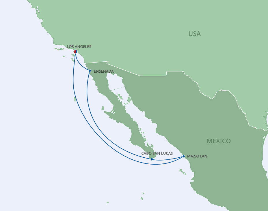 Cabo San Lucas is the sunny resort town on the tip of Mexico’s Baja California. This colourful small town is known for its excellent big-game fishing, great diving spots and challenging surf waves. Ships will anchor offshore in Cabo San Lucas bay and tender guests to shore.