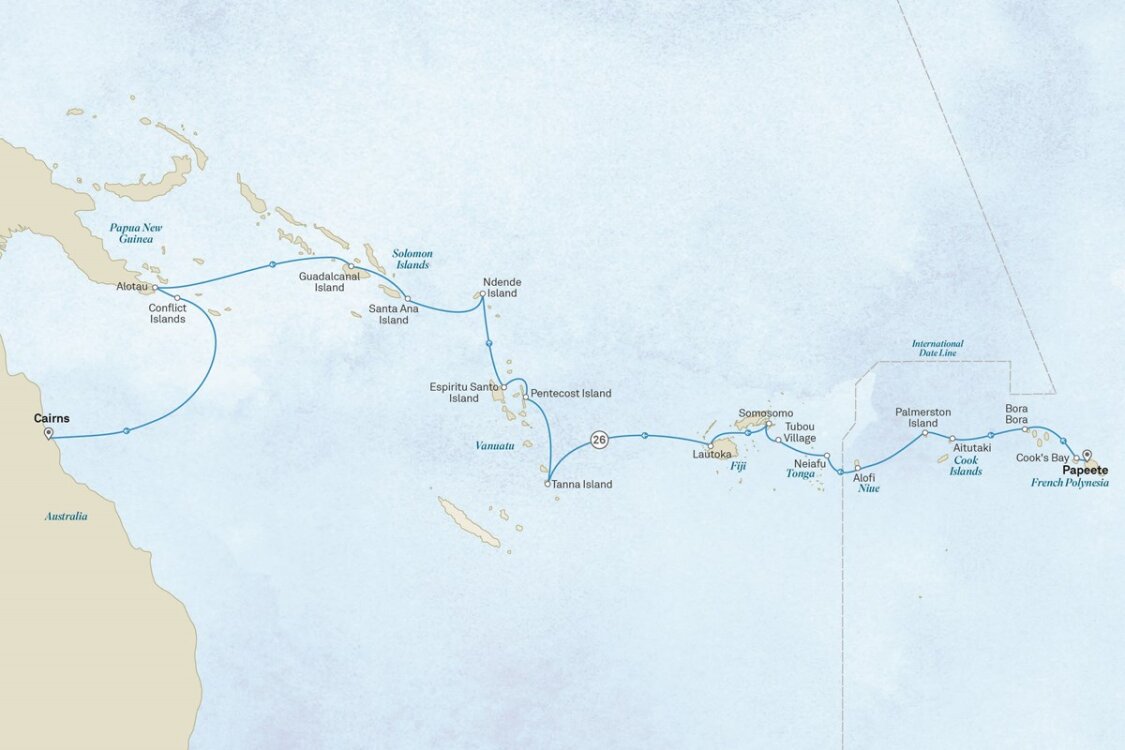 This afternoon, be warmly greeted with a glass of Champagne as you board Scenic Eclipse II, your ultra-luxury home for the next 12 days. Meet the Captain, crew and your Discovery Team before setting sail into the sparkling South Pacific.