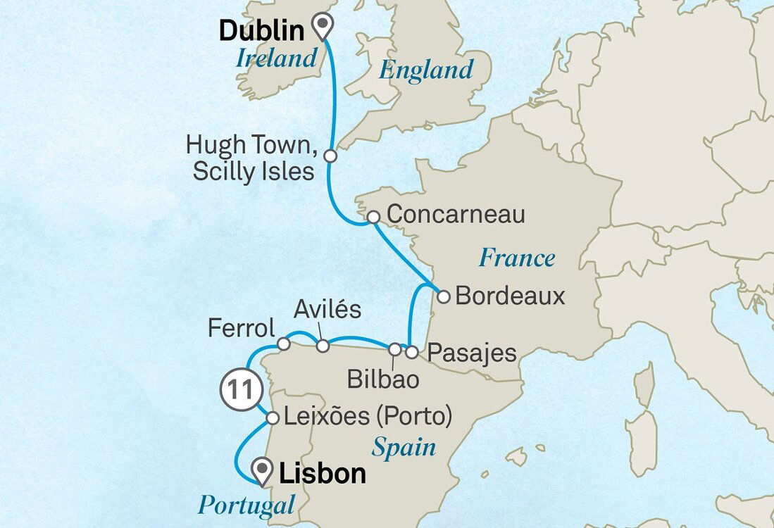 Your cruise finishes in the Irish capital, an ancient city with a vibrant culture and music in its soul. Disembark in Dublin after one final splendid breakfast, taking with you memories of a truly unforgettable cruise.