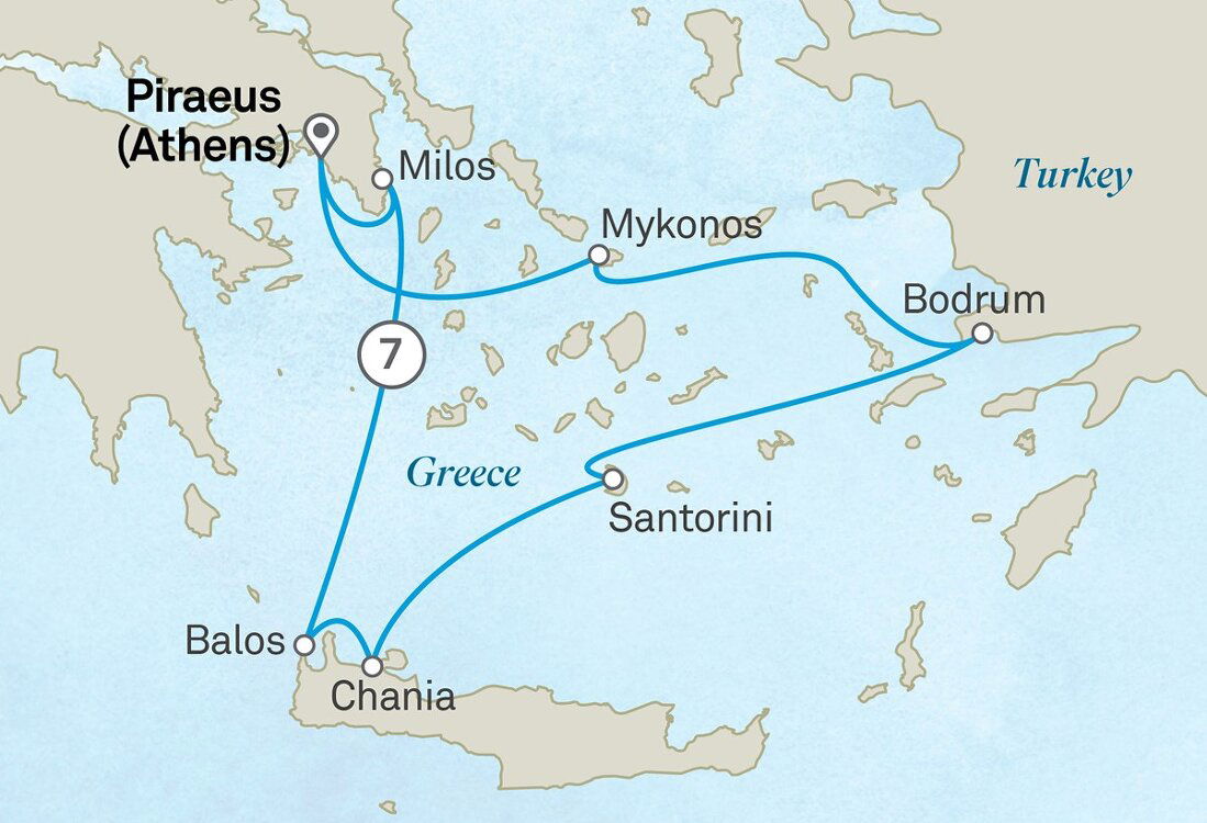 Wake to a coffee delivered to your suite by your butler. Enjoy an early breakfast in the alfresco Yacht Club before exploring Milos, a hidden gem in the Cyclades. Explore some of its 70-plus secluded beaches with crystal-clear water, colourful cliffs and dramatic rock formations. Wander through charming villages adorned with traditional white houses and colourful doors. Delight in fresh seafood at seaside tavernas and savour local delicacies such as the famous cheese pies. Immerse yourself in the island's rich history and visit ancient sites such as the catacombs and the ancient Roman theatre. (B/L/D)