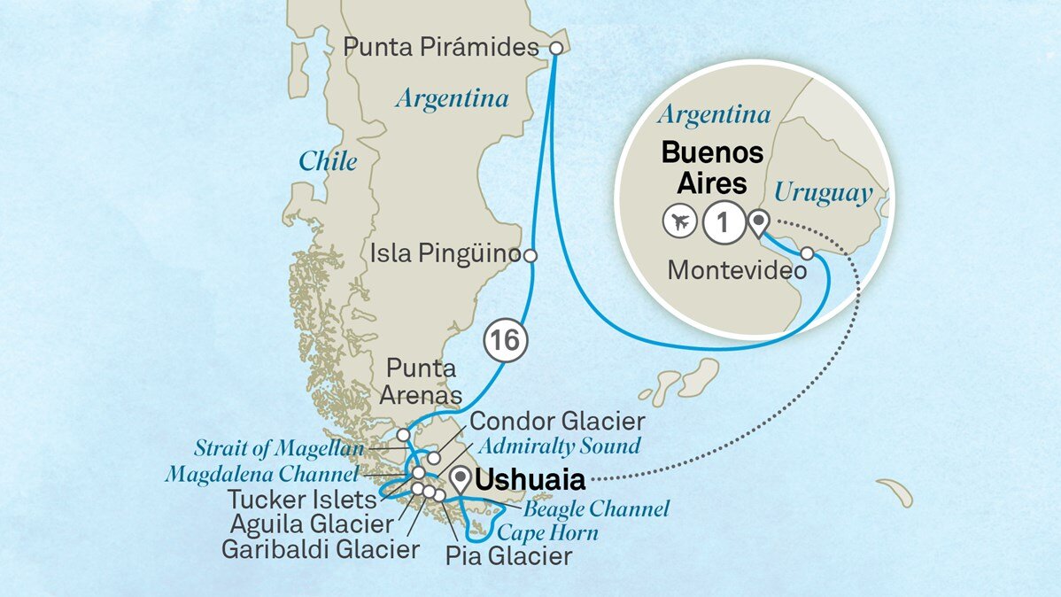Your journey of wonder ends this morning in Buenos Aires. Farewell the crew and your new friends and disembark after breakfast, taking away memories of a truly unforgettable experience.