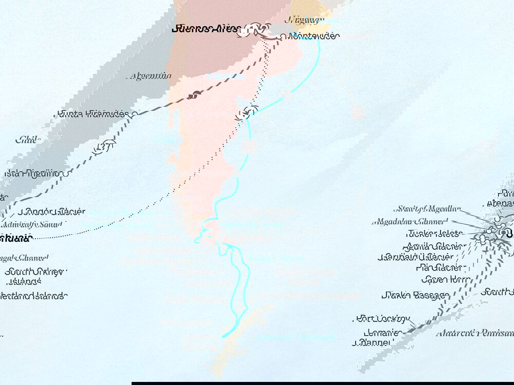 Your journey of wonder ends this morning in Buenos Aires. Farewell the crew and your new friends and disembark after breakfast, taking away memories of a truly unforgettable experience.