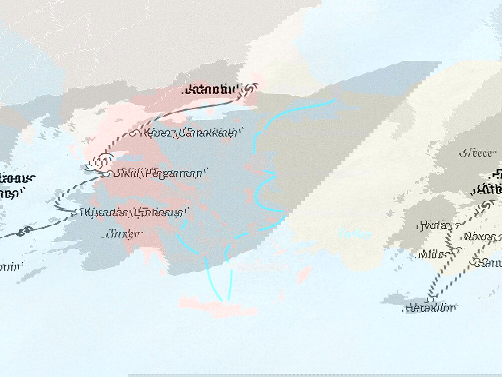 Begin your day with a graceful sail through the legendary Dardanelles Strait, a narrow passage where history and natural beauty converge between Europe and Asia. This narrow passage links the Aegean Sea to the Sea of Marmara and is best known as the site of the Gallipoli campaign in WWI. Take in the marvellous views from the deck as you cruise past rugged shorelines, ancient ruins and rolling hills. After lunch, you'll arrive in Kepez, ready to explore this charming seaside town.