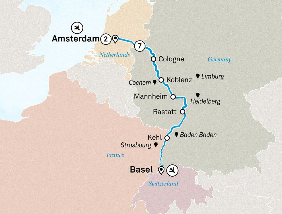 Your cruise concludes this morning in Basel. Enjoy one final breakfast on board, then disembark, taking with you lifelong memories of a remarkable journey.