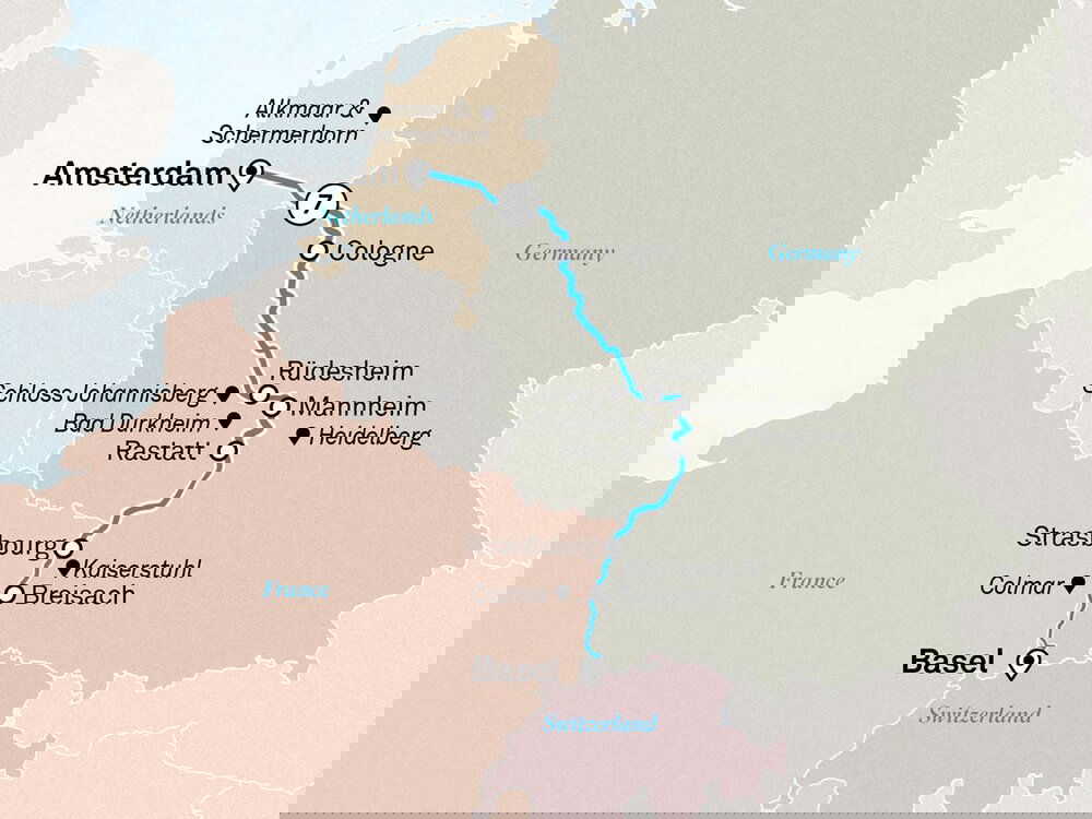 Your cruise finishes this morning in Basel. Savour one final breakfast on board before you disembark, taking with you a lifetime of memories of the wonders and wines of the Rhine.