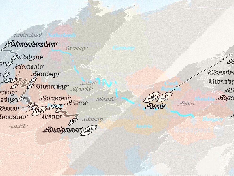 After a relaxed morning on board, dock in Würzburg. With its lavish Baroque and Rococo architecture, you’ll be captivating by this glamorous port. This city straddles the Main River in the heart of Franconian wine country. Surrounded by undulating vineyards, Würzburg is home to a World Heritage-listed palace, a dominating hilltop fortress, the 15th century Old Main Bridge, and three universities, including Bavaria’s oldest.