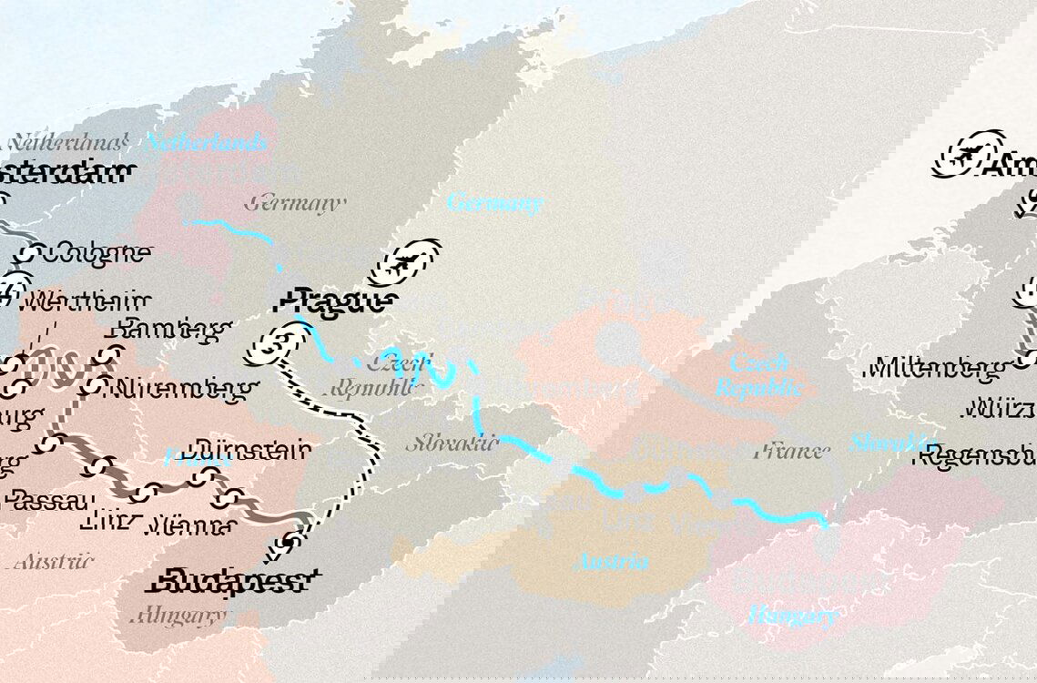 Cruise into Bamberg this afternoon and join a guided tour to explore the World Heritage-listed Old Town. A charming Old Town Hall which occupies an island on its own, a Gothic and Romanesque-style cathedral and the Old and New Residences – an episcopal palace, a pretty ‘Little Venice’ and a 12th century castle that teeters on the highest of the seven hills – are some of the incredible places you’ll see during your guided city tour. (B/L/D)