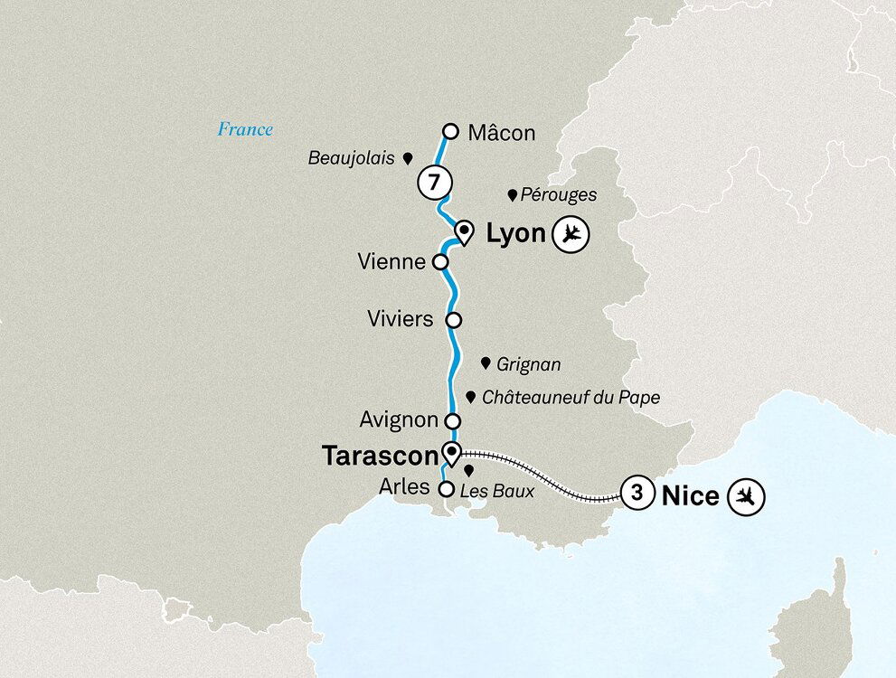 Tarascon is the end of your cruise. Depart after a farewell breakfast and journey by train to Nice.
