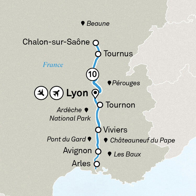 Spend the final day of your wine-curated cruise in France’s culinary capital. Sitting at the confluence of the Rhône and Saône rivers, the city is home to more than 4,000 restaurants – including 20 that hold Michelin stars. Learn more about its rich history, dating back to the days of the Romans, or discover one of the region’s surrounding villages.