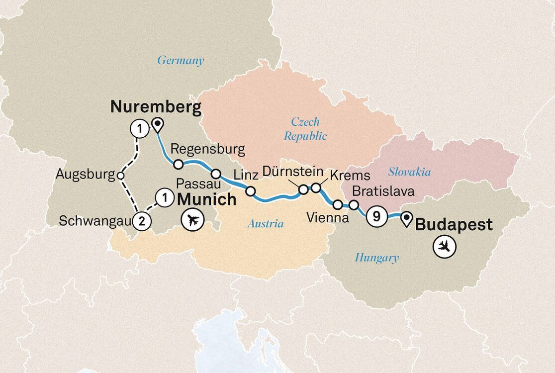 After a delicious breakfast, prepare for an excursion to a truly iconic fairytale castle. Neuschwanstein was built in the 19th century for King Ludwig II and inspired by an opera by Richard Wagner. One of the most photographed buildings in the world, you’ll have the opportunity to explore this magnificent castle inside and out during a guided tour. (B)