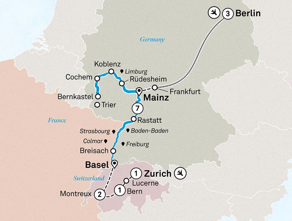 Bid farewell to the German capital this morning and board the high-speed train towards Frankfurt. Once there, take a short transfer to your 5-star Scenic Space-Ship for the beginning of your river cruise. (B/D)