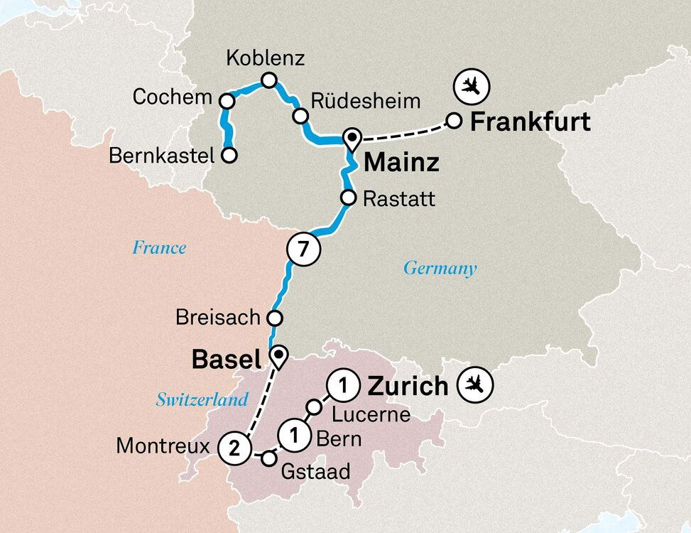 Start your journey in Basel, where you’ll depart across the Swiss Alps toward the picturesque lakeside resort town of Montreux. Along the way, immerse yourself in the world of one of the 20th century’s most iconic figures with a stop at Chaplin’s World Museum. Explore the home, studio, and park that served as the sanctuary for the legendary comedian, Charlie Chaplin, during his 25 years of residence. Learn about his life, artistry, and lasting impact on the world of film as you take in the rich history and stunning views of the surrounding landscapes. (B)