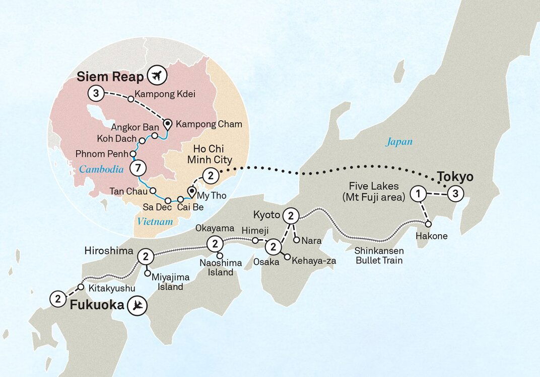 Ryokan Upgrade - For a unique insight into Japanese culture, choose to stay tonight in a Ryokan (at additional cost, must be pre-booked before departure). This traditional Japanese Inn has tatami mat flooring with futon beds, sliding shoji paper doors, private bath facilities, and includes dinner and breakfast. (B/L/D)