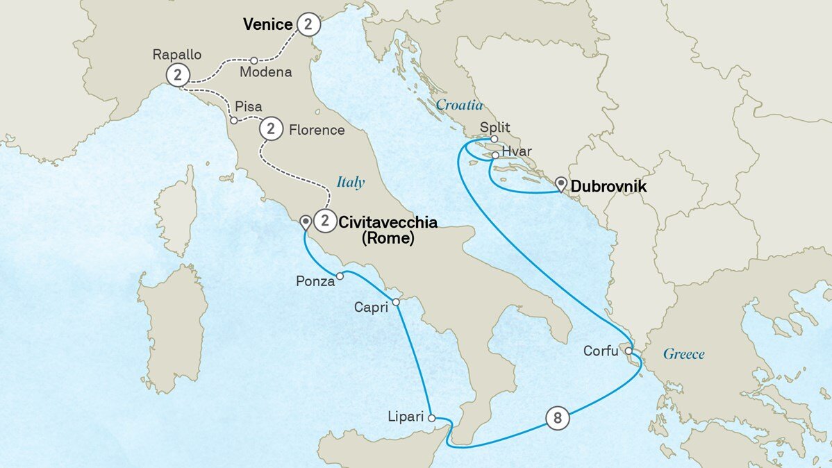 Upon boarding, be warmly greeted by our world-class crew and raise a glass of champagne with fellow guests on the Observation Deck as you delve into the magical Mediterranean en route to Ponza. (B)
