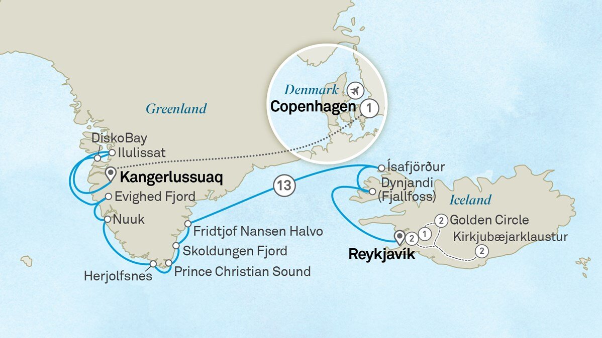 Over the next seven days in Greenland, countless adventures await, from exhilarating whale watching to thrilling kayak excursions and invigorating polar plunges, promising unforgettable experiences. (B/L/D)