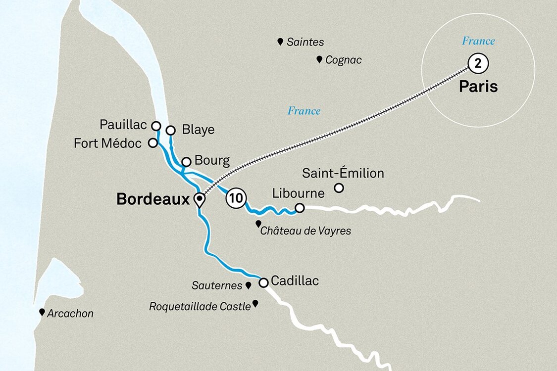 Please note: The Gironde, Dordogne and Garonne waterways are part of a tidal river system which results in changing water levels in the region. Every effort is made to keep to the brochure itinerary however based on tides it will be amended or modified.