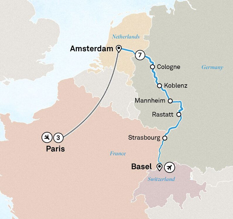 Your cruise concludes this morning in Basel. Enjoy one final breakfast on board, then disembark, taking with you lifelong memories of a remarkable journey.