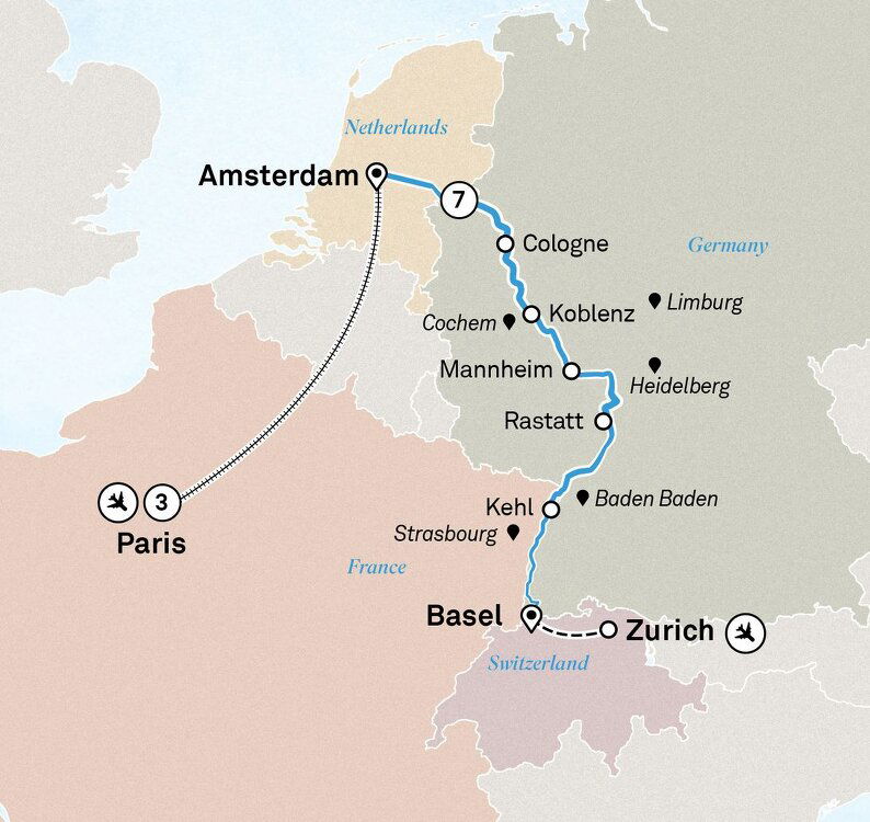 Your cruise concludes this morning in Basel. Enjoy one final breakfast on board, then disembark, taking with you lifelong memories of a remarkable journey.