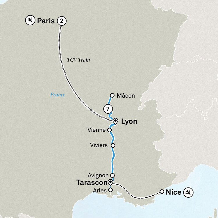 After breakfast, transfer via high speed train to Lyon where your friendly crew will welcome you on board the Scenic Sapphire ready for your cruise along the Rhône and Saône rivers. (B/D)