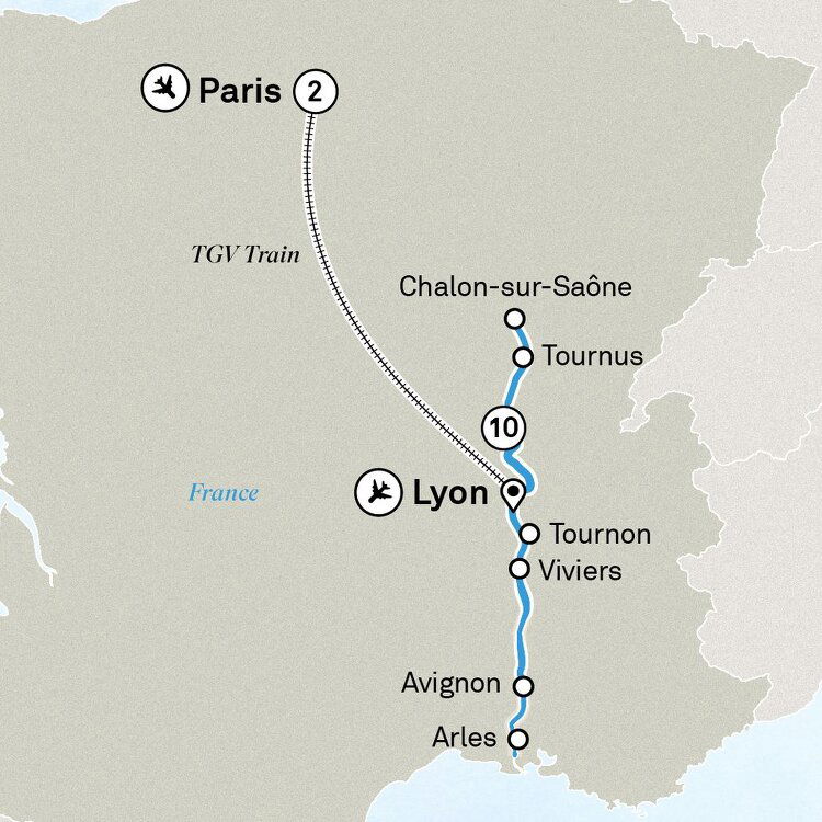 After breakfast, transfer via high speed train to Lyon where you will embark the Scenic Sapphire. Our friendly crew will be excited to welcome you on board ready for your 10 night cruise along the Saône and Rhône rivers. (B/D)