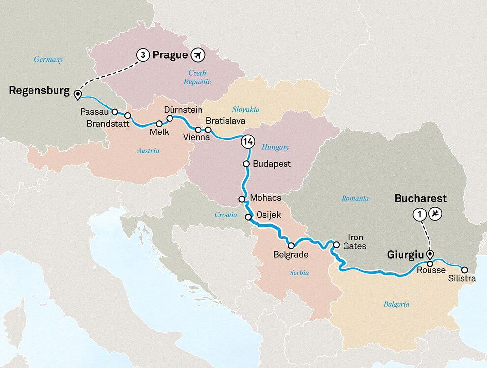 Today you'll cruise through the spectacular scenery of the Djerdap Gorge system, or Iron Gates. This stretch of the Danube is the natural border between Serbia and Romania, and features four narrow gorges, soaring cliffs and the mighty rock carving of Decebalus, the former Romanian king.