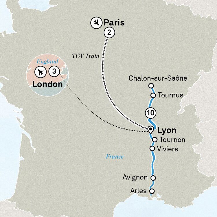 After breakfast, transfer via high speed train to Lyon where you will embark the Scenic Sapphire. Our friendly crew will be excited to welcome you on board ready for your 10 night cruise along the Saône and Rhône rivers. (B/D)