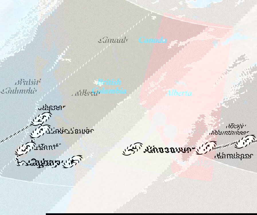 Embark on the legendary Rocky Mountaineer, a journey through the awe-inspiring landscapes of the Canadian Rockies, where you’ll traverse mountain passes and dramatic canyons in luxurious comfort on board your GoldLeaf Service glass-dome carriage. Tonight, after your unforgettable experience travelling through the heart of the Rockies, unwind in a Kamloops hotel selected by Rocky Mountaineer. (B/L)