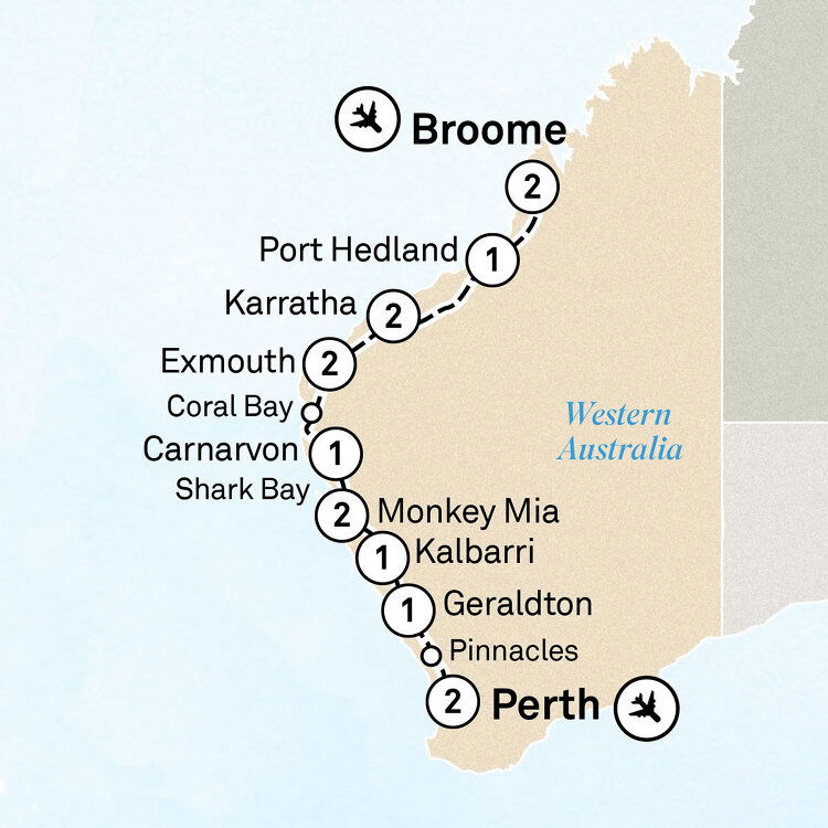 Karratha is “the heart of the West Pilbara Coast”, and a great headquarters for anyone exploring the nearby Dampier Archipelago and the Burrup Peninsula. Today, travel to Murujuga National Park and marvel at the UNESCO World Heritage site of ancient rock engravings depicting human figures and animal life, including some extinct species. (B/D)