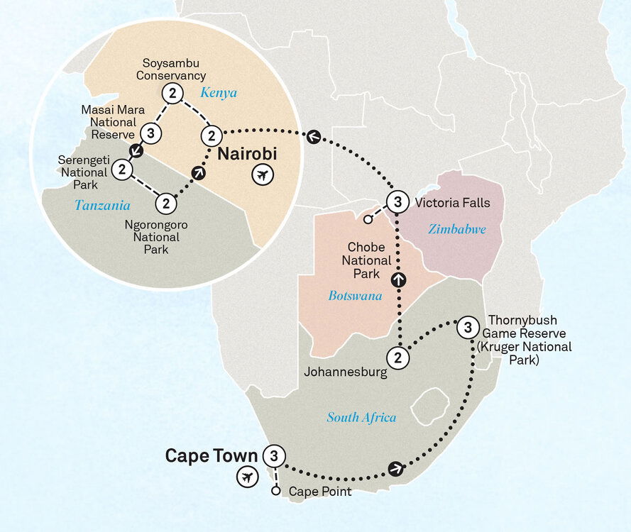 Enjoy one more day on the lookout for the ‘Big Five’ in the Masai Mara: lions, savannah elephants, Cape buffaloes, leopards, and black rhinos. Marvel at the incredible wildlife and remarkable landscapes that make this reserve so unique. (B/D)