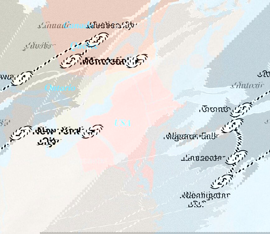 Discover Ottawa on a guided tour. See Parliament Hill on the Ottawa River with its Victorian architecture and museums, and the park-lined Rideau Canal. Travel from Ottawa to Toronto. Enjoy a two-night stay at the Fairmont Royal York. (B)