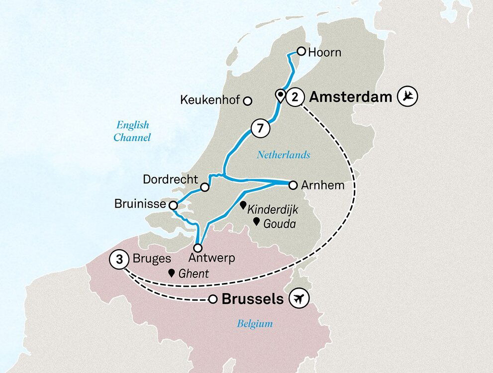 The afternoon is yours to explore Amsterdam further. Perhaps visit one of the many famous masterpiece-filled galleries or fascinating museums that call the city home. (B/D)