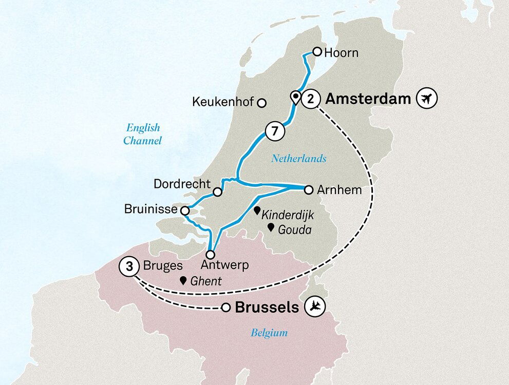 Bid farewell to the Netherlands capital this morning and transfer to the Airport for your onward journey.