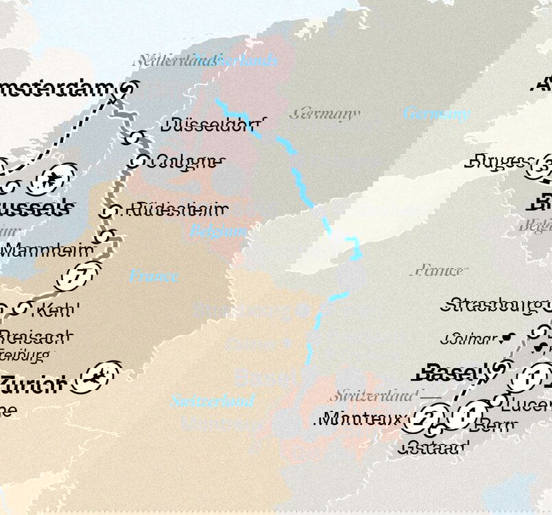 This morning you will wake up in the city of Kehl, the gateway to Strasbourg. Strasbourg is located on the border of France and Germany, making it a unique mixture of both French and German architecture and culture.