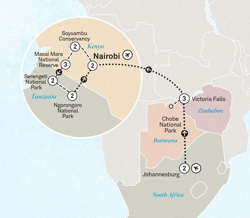 Enjoy one more day on the lookout for the ‘Big Five’ in the Masai Mara: lions, savannah elephants, Cape buffaloes, leopards, and black rhinos. Marvel at the incredible wildlife and remarkable landscapes that make this reserve so unique. (B/D)