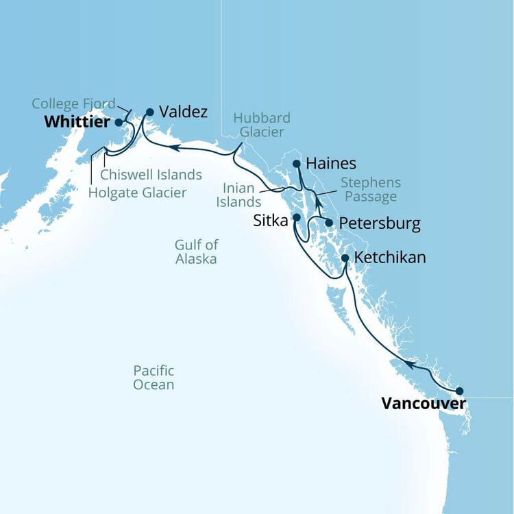 Embark on an unforgettable journey your the cruise glides through College Fjord's icy waters, with sweeping landscapes, snow-capped peaks, and mirror-like sea. Marvel at the 16 tidewater glaciers, and witness the captivating calving displays, where chunks of ice break off into the sea, all from the comfort of the ship.