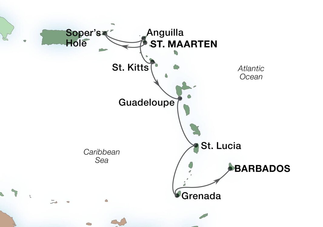 Soper's Hole, nestled on the west end of Tortola in the British Virgin Islands, offers a picturesque and relaxed setting perfect for a leisurely day ashore. The marina is surrounded by brightly painted buildings that house charming boutiques and local eateries, inviting visitors to stroll and shop at a relaxed pace. This location is renowned for its sailing opportunities and water sports, making it an ideal spot for those looking to experience the Caribbean's famous turquoise waters.